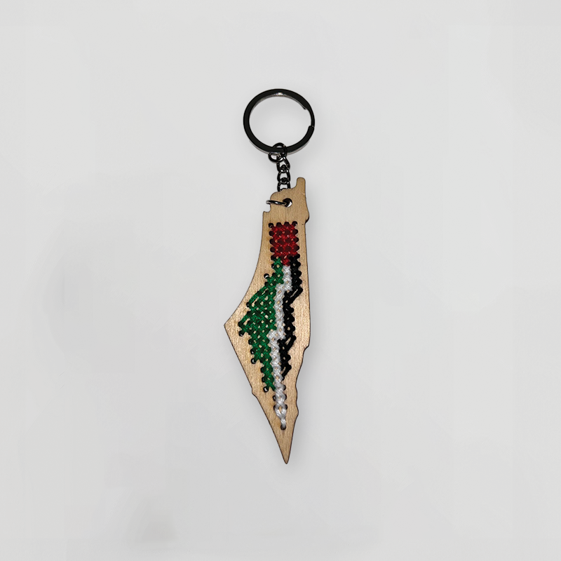 Palestine keyrings are attached to Palestine map made of olive wood.
